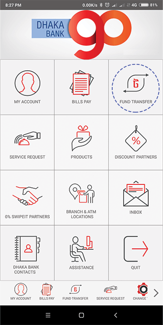 2. Dhaka Bank Mobile App (Dhaka Bank Go) v.1.4.9 (Jun 28, 2018) or later versions