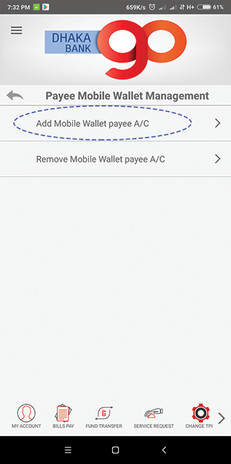 Step 6: Please select "Add Mobile Wallet Payee A/C'