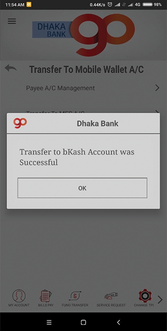 Dhaka Bank to bKash Fund Transfer by using Dhaka Bank Go – the mobile app