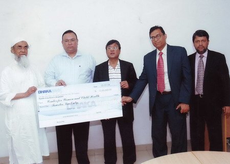 As a part of the corporate social responsibility and to mitigate sufferings of the poor women and children of the country, Dhaka Bank Foundation has provided Taka 1.2 Million in the year 2007 to Center for Woman and Child Health (CWCH) as donation to bear their operational cost. This donation was formally handed over to Professor M. Q. K. Talukder, Chairman of CWCH by Mr. ATM Hayatuzzaman Khan, Former Chairman, Dhaka Bank Limited on July 6, 2008 at the CWCH, Ashulia, Dhaka.