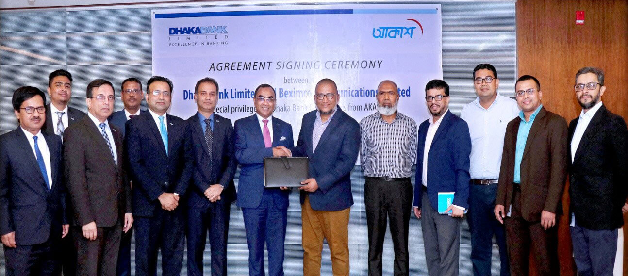 H.M. Mostafizur Rahaman, SVP & Head of Cards, of Dhaka Bank Limited and Md. Luthfor Rahman, Chief Financial Officer of Beximco Communications Limited signed the agreement on behalf of their respective organizations. Among others, from Dhaka Bank Limited Syed Mahbubur Rahman Managing Director & CEO, Md. Shakir Amin Chowdhury, Deputy Managing Director Md. Shafquat Hossain, SEVP & Head of Retail Banking, A M M Moyen Uddin, SEVP & Head of Information Technology Division, and from Beximco Communications Limited D S Faisal Hyder CEO, Zia Hasan Khan General Manager; Business Planning & Supply Chain along with other officials of both the organisations were also present in the agreement signing programme.