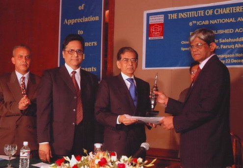 Managing Director of Dhaka Bank Limited Mr. Shahed Noman received the award from Dr. Salehuddin Ahmed, Governor, Bangladesh Bank at 6th ICAB National Awards 2005 Ceremony organized by the Institute of Chartered Accountants of Bangladesh (ICAB) at the Pan Pacific Sonargaon Hotel on Friday, December 22, 2006. A total of 13 financial, non- financial and non-government organizations received the awards this year.
