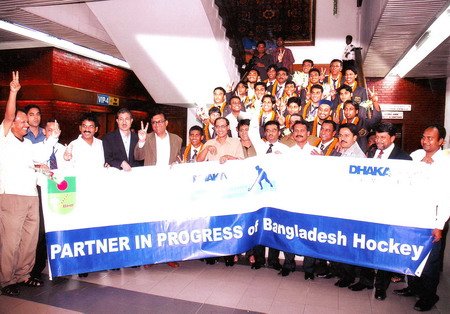 Dhaka Bank Limited warmly received Bangladesh National Hockey Team at Zia International Airport yesterday night. The team was reached Dhaka from Singapore after winning 3rd AHF Cup. Total nine teams were participated in the 3rd AHF Cup.