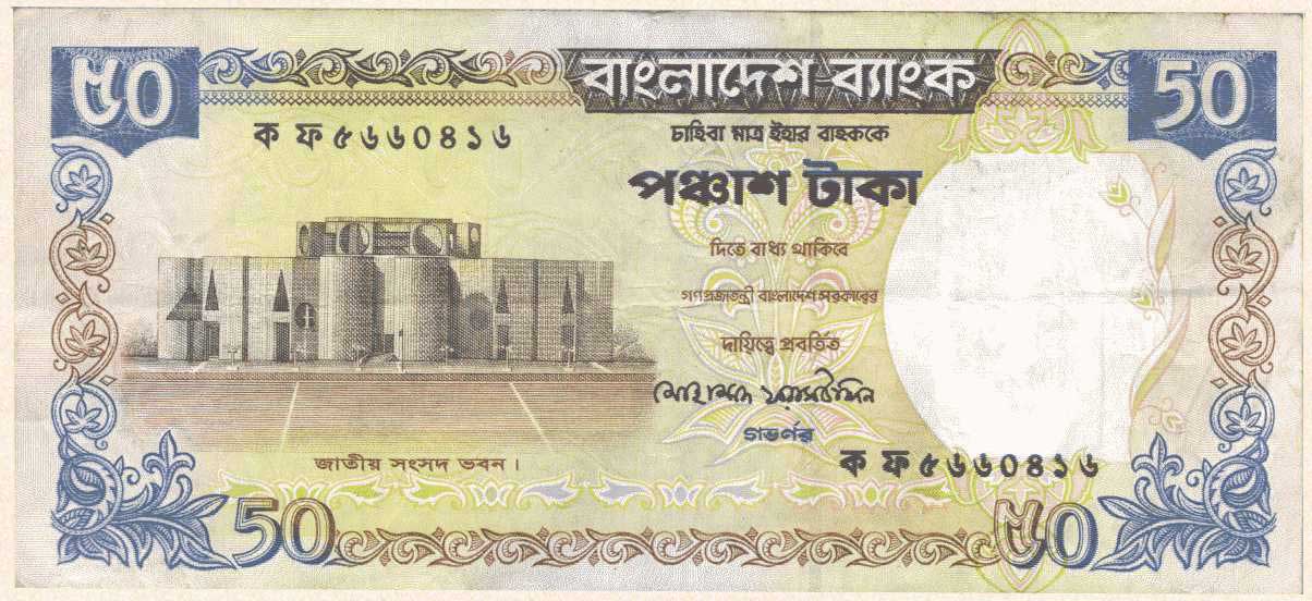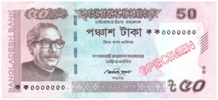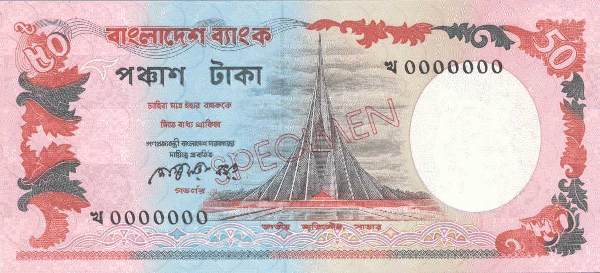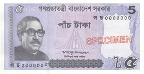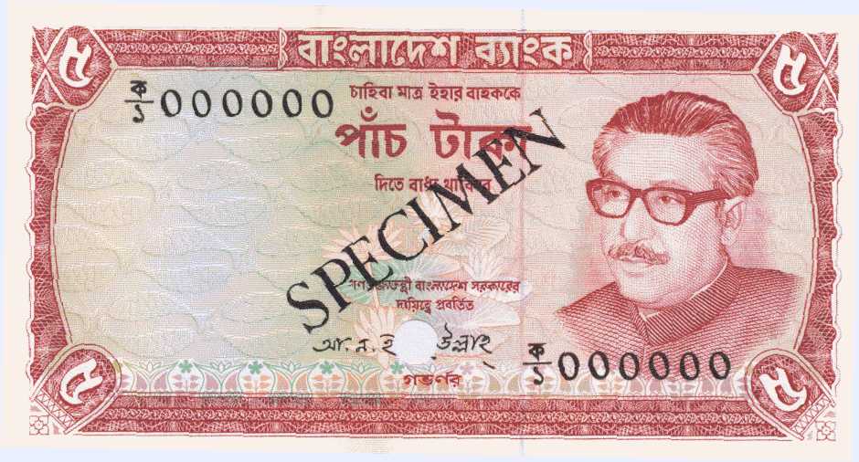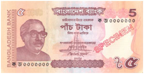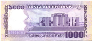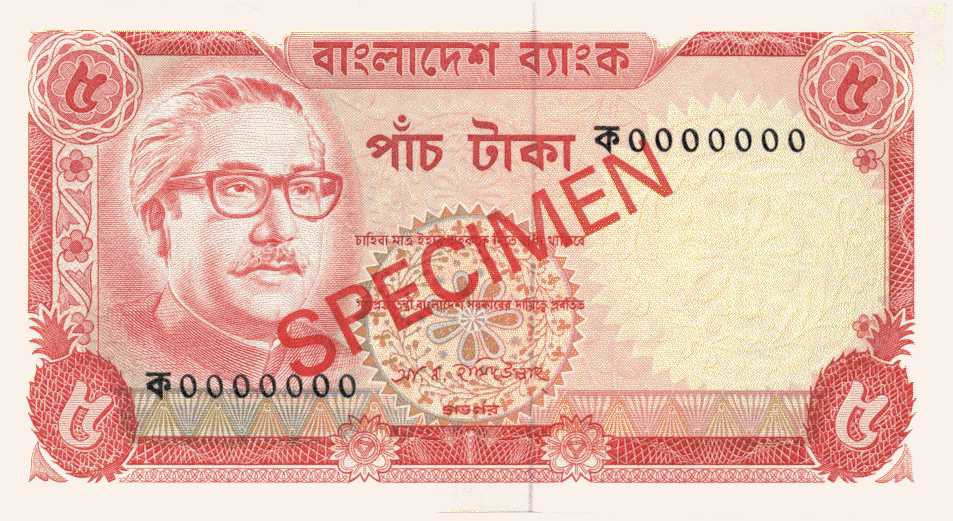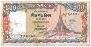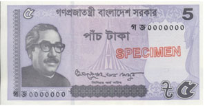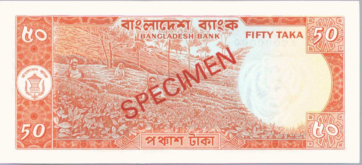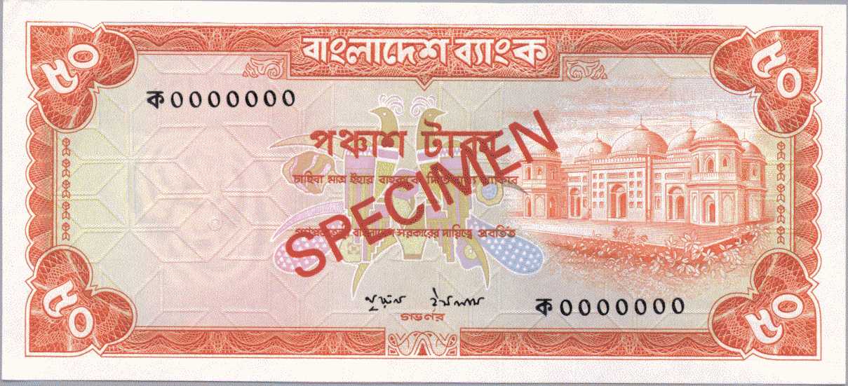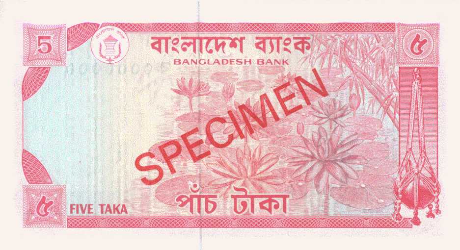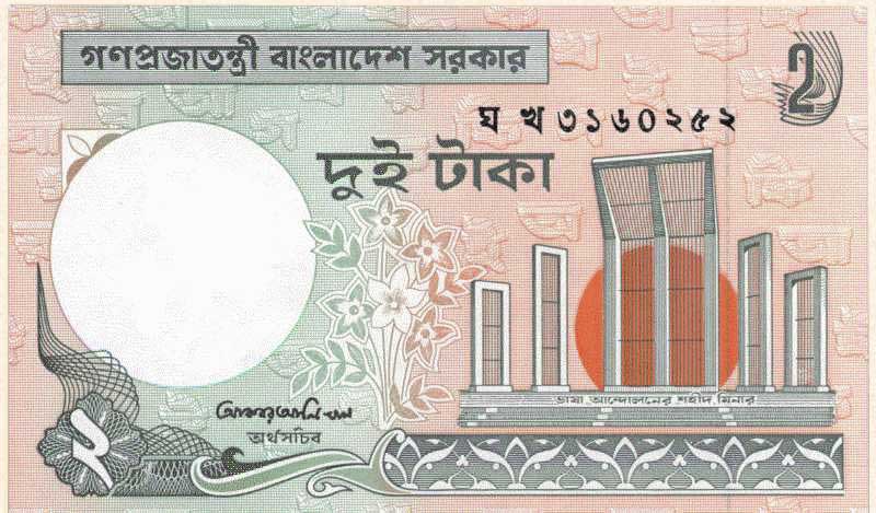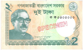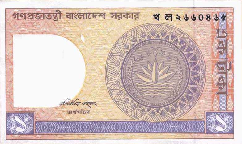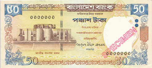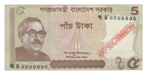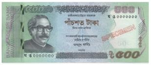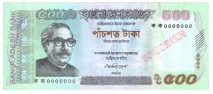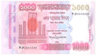 - Security Feature: Water mark of the head of a Royal Bengal Tiger in the left. Optical Thread. National flower Shapla in see-through window.