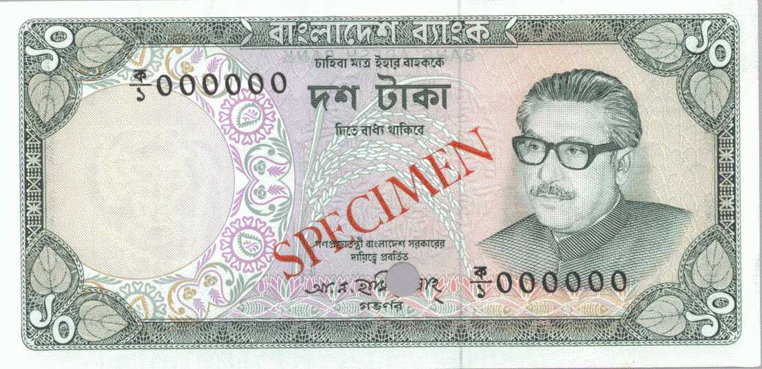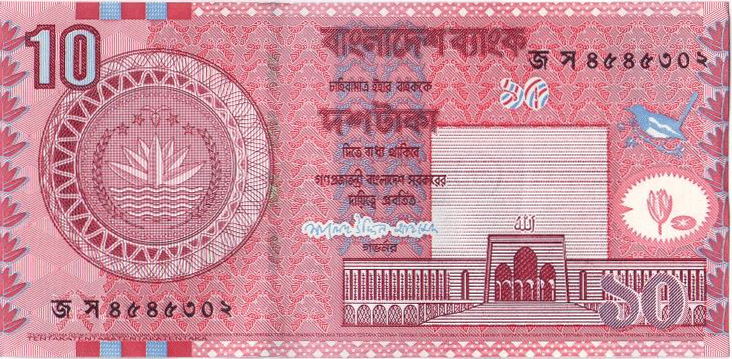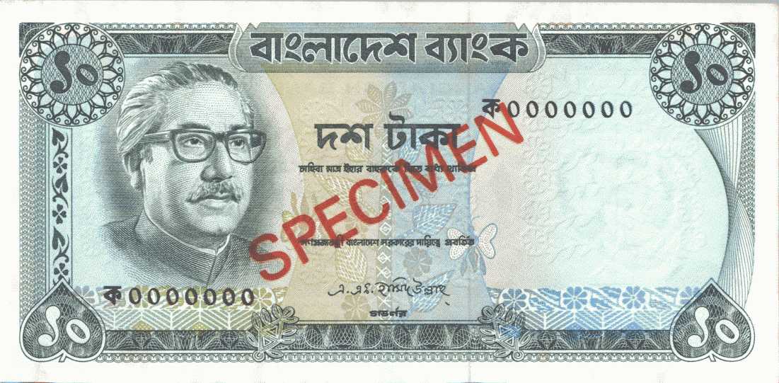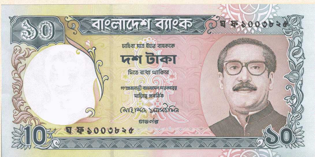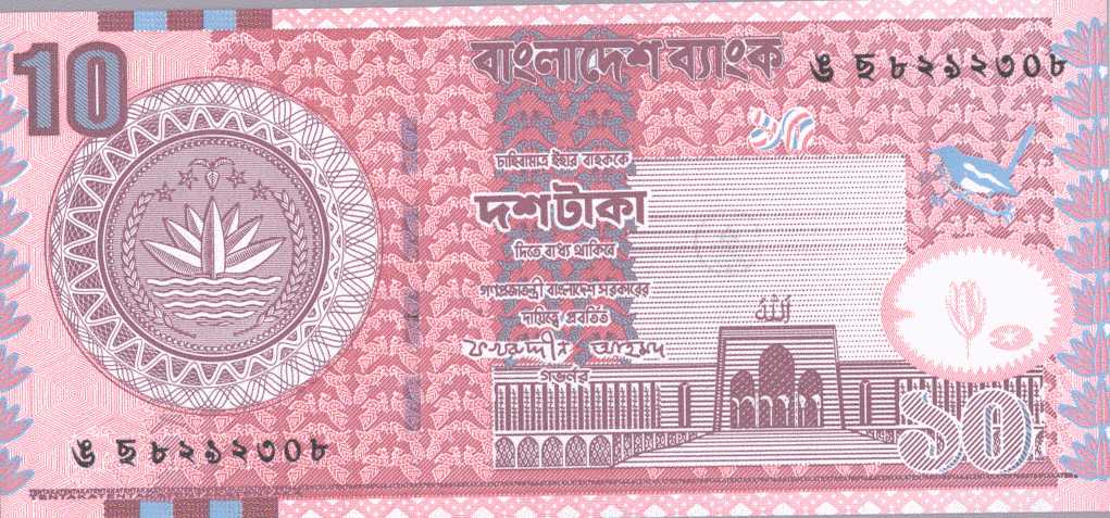 - Security Feature: A Ten Taka Note with signature of Dr. Salehuddin Ahmed, governor has been issued since 21 September 2006. Various portions along with the serial number in the obverse of the note are intaglio printed. Others Notes of same denomination are on circulation as usual.