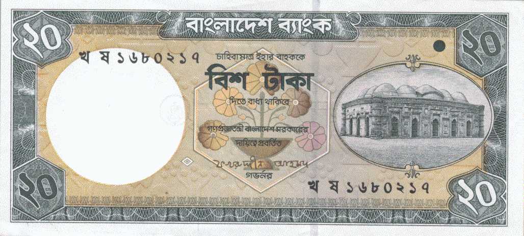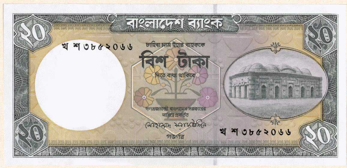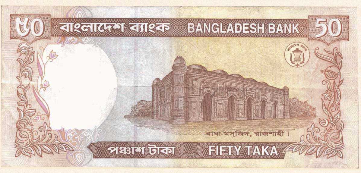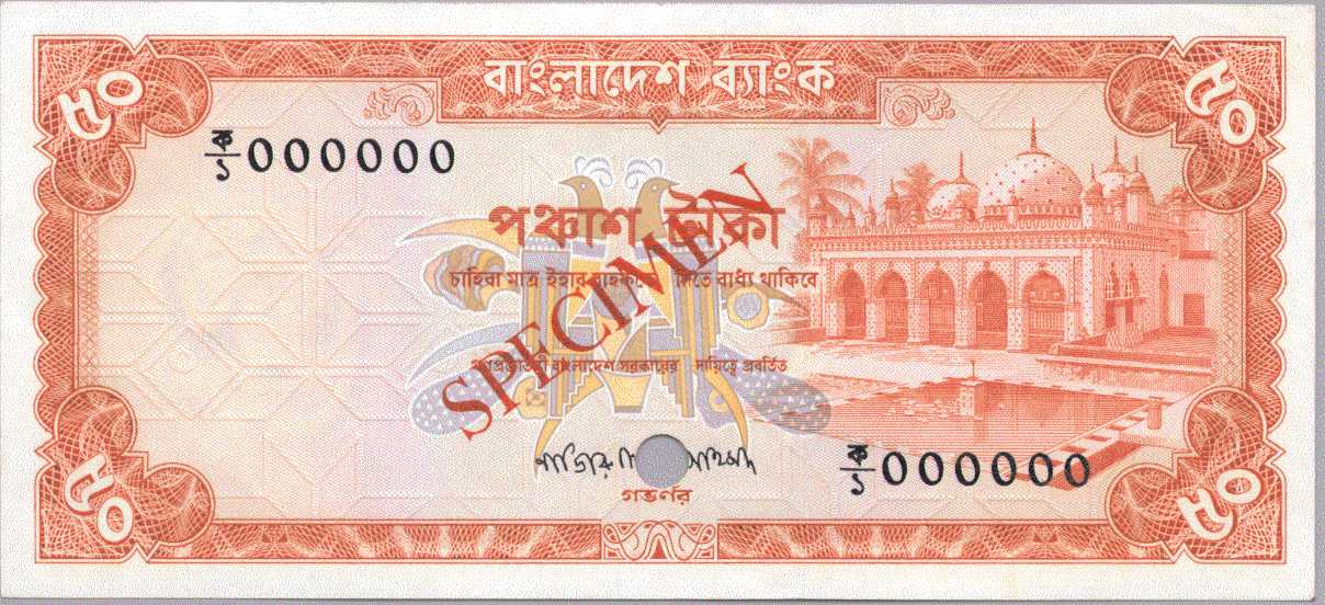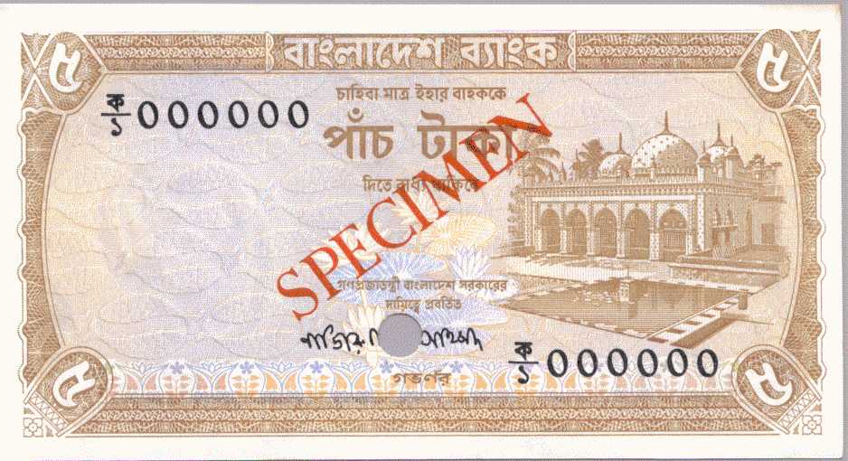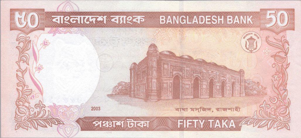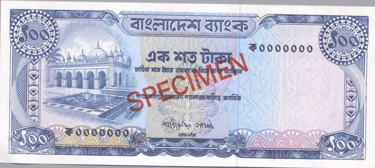 - Security Feature: A security thread at the left of the picture of mosque and watermark depicting the raised head of a Royal Bengal Tiger.
