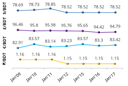 Bangladesh’s exports gained momentum in most of 2016, but a stronger taka against a basket of other currencies may hurt shipments this year, according to global credit rating agency Fitch. “In 2017, this sector may feel the pinch of further real effective exchange rate appreciation, although Bangladeshi labour costs are still relatively low,” the New York-based company said yesterday. An increase in ‘real effective exchange rate appreciation’ or REER implies that exports become more expensive and imports become cheaper; an increase indicates a loss in trade competitiveness. Fitch said Bangladeshi apparel exports continued to be strong, accounting for 81.0% of total exports and earning the country USD 26.1 billion in the first 11 months of last year, which was USD 24.6 billion in 2015.