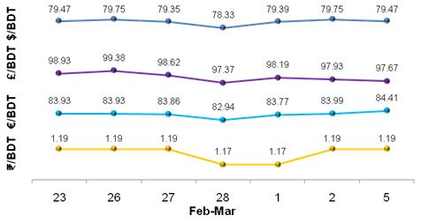 Bangladesh’s foreign exchange reserves hit a record $32.56 billion at the end of February, the central bank said on Wednesday, up nearly $840 million on the previous month. The reserves are sufficient to cover about nine months’ worth of imports and are $4.5 billion higher than a year ago. Steady garment exports and remittances from Bangladeshis working overseas, the key drivers of the country’s more than $200 billion economy, have helped build reserves in recent years.